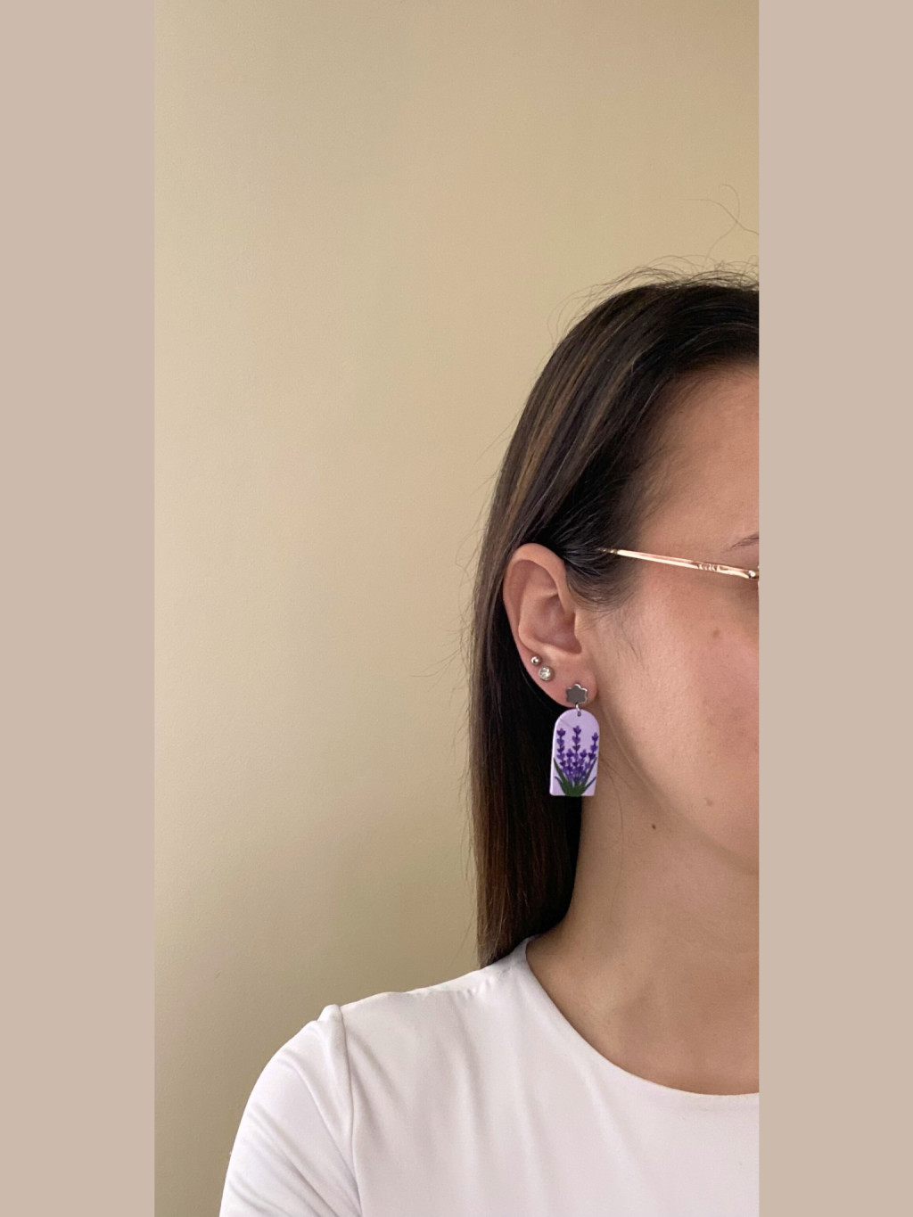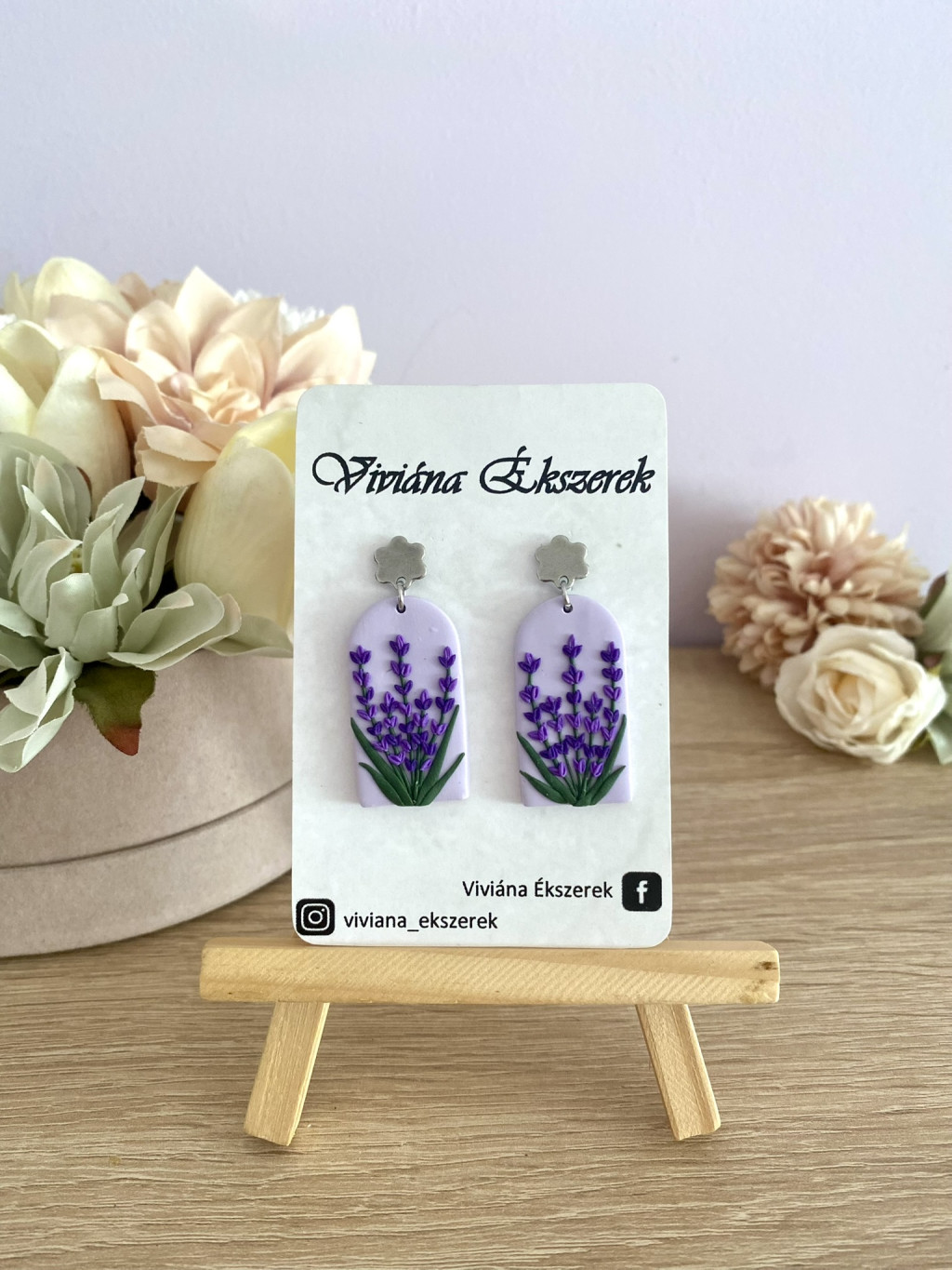 RÁHEL - Lila, levendula mintás fülbevaló ezüst színű szerelékekkel